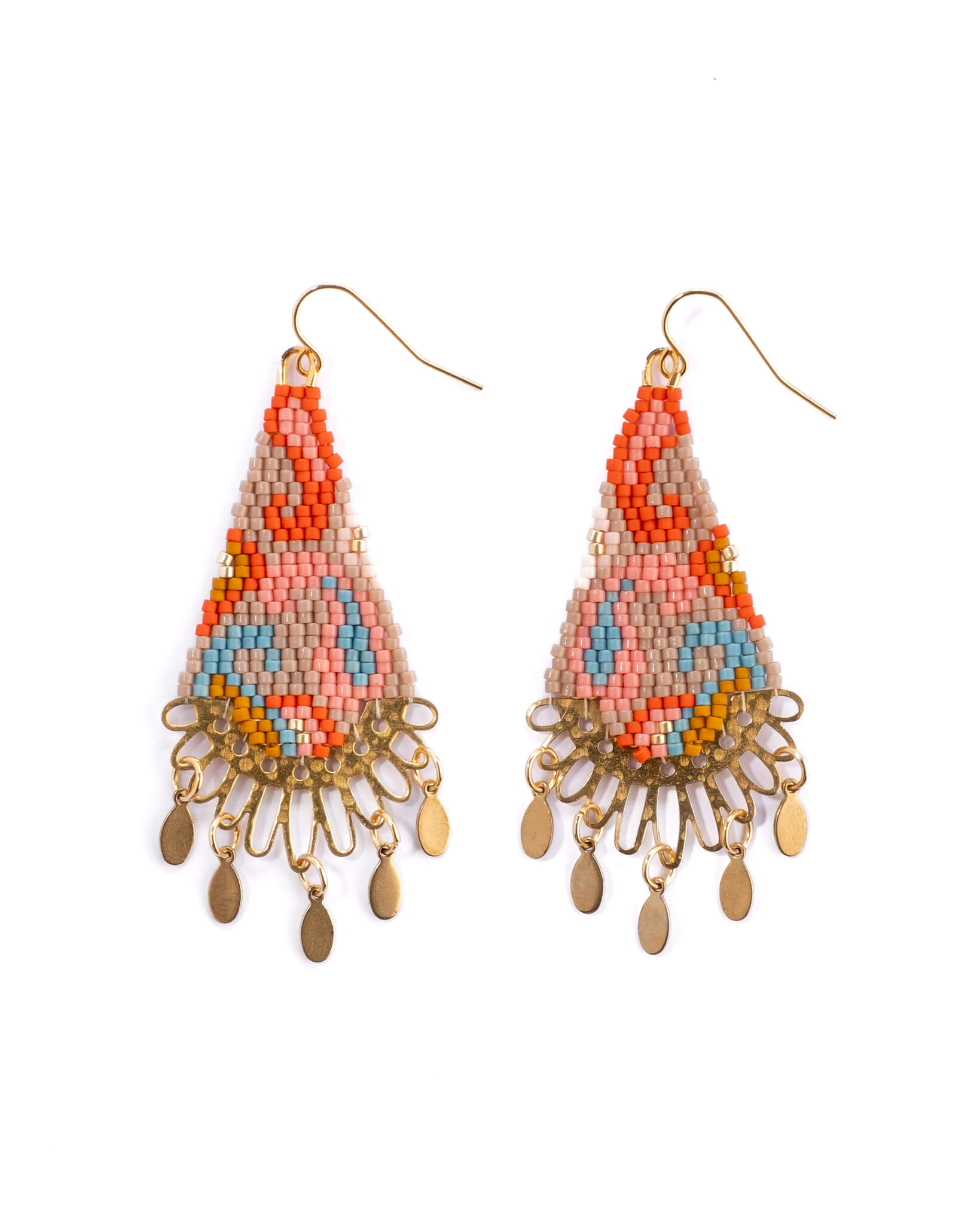 Beaded Handwoven Sonoran Triangle Fringe Earrings - Beige