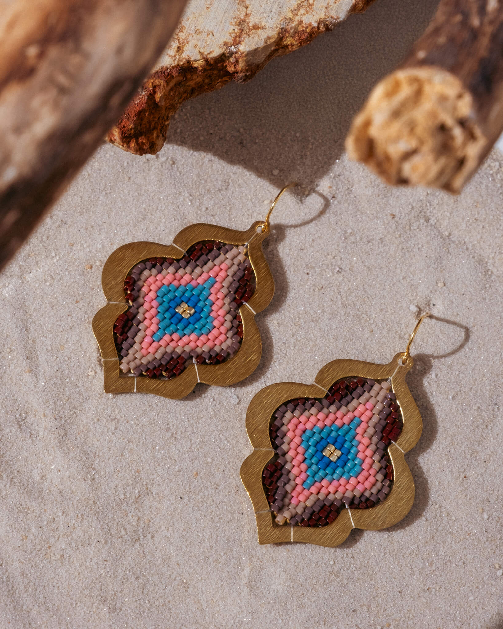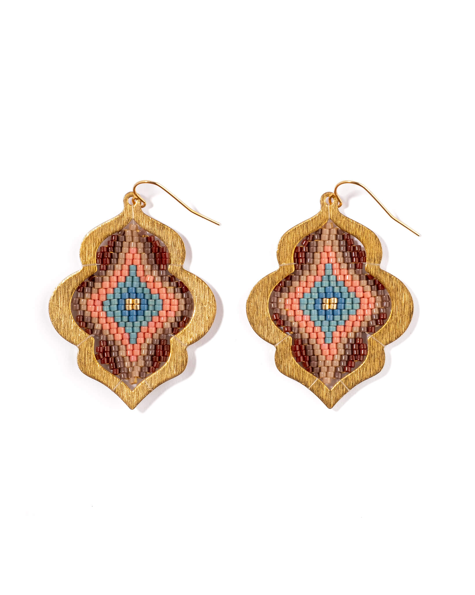 • Beaded Handwoven Window Drop Earring (Brown/Blue)