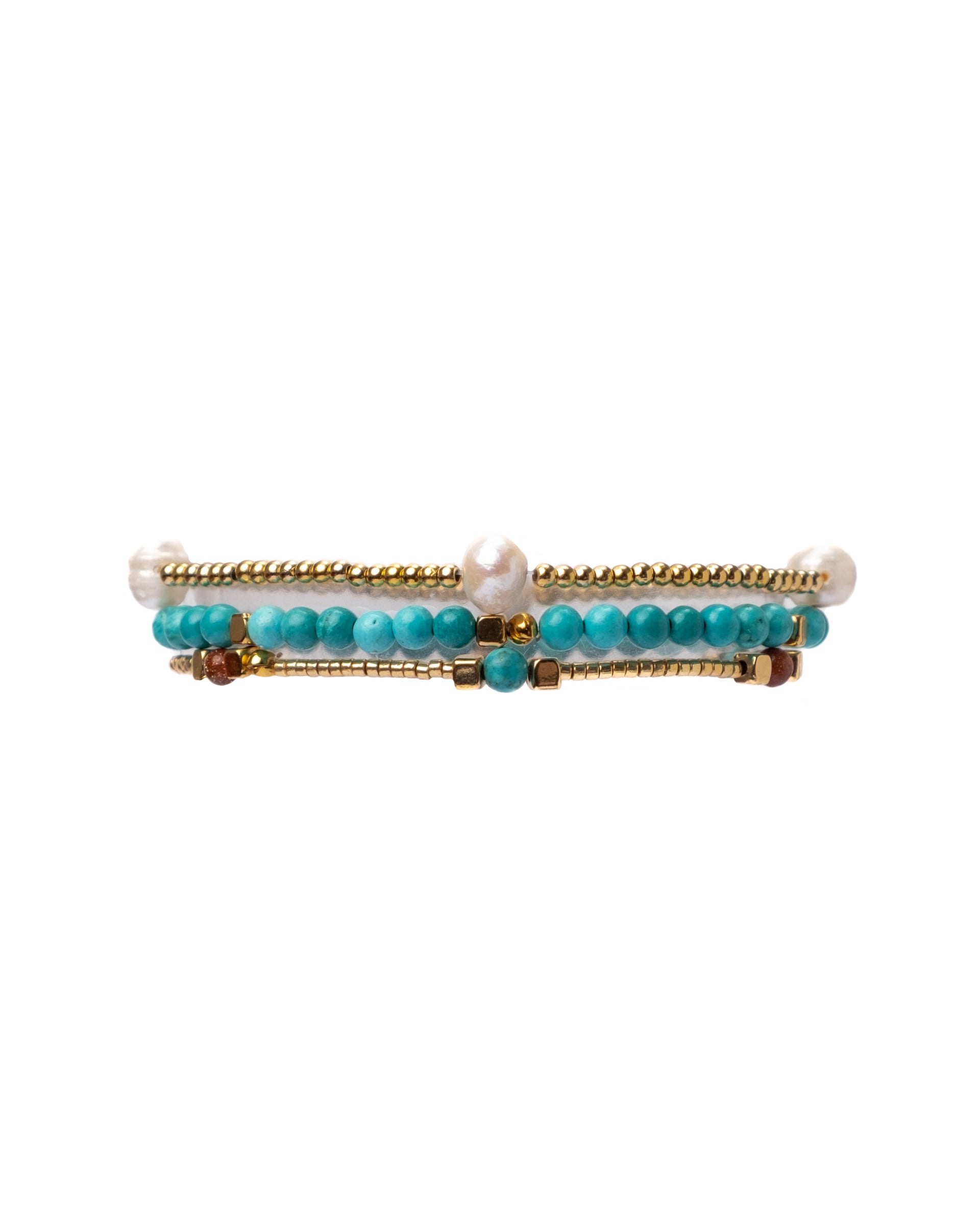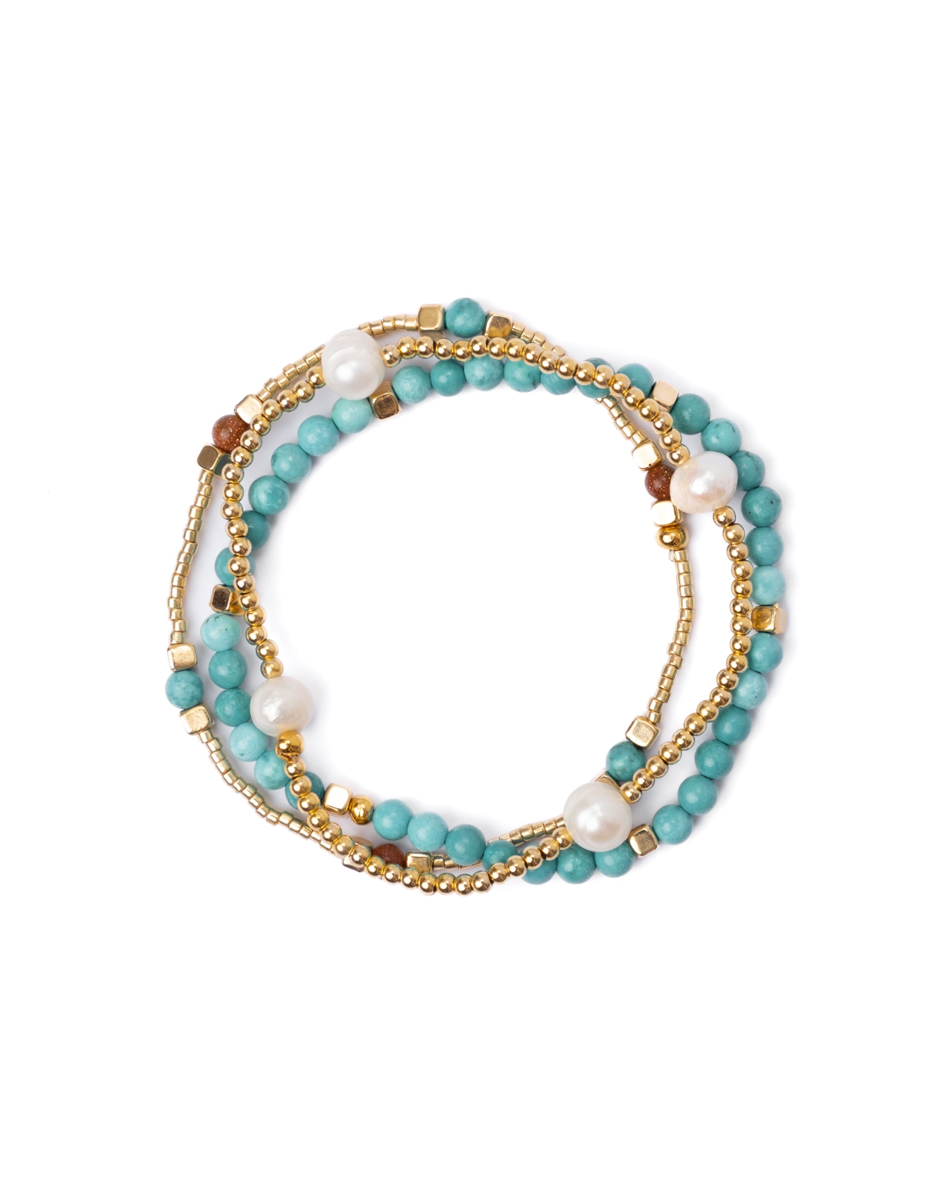 These stretch bracelet sets feature 3 unique bracelets that combine some of our favorite materials including semiprecious stones, river pearls and premium Japanese Miyuki glass beads. Distinct textures, shapes and colors make these the perfect stack to wear on their own or to combine with other bracelet favorites. Made from soft flexible elastic they fit a large range of wrist sizes.